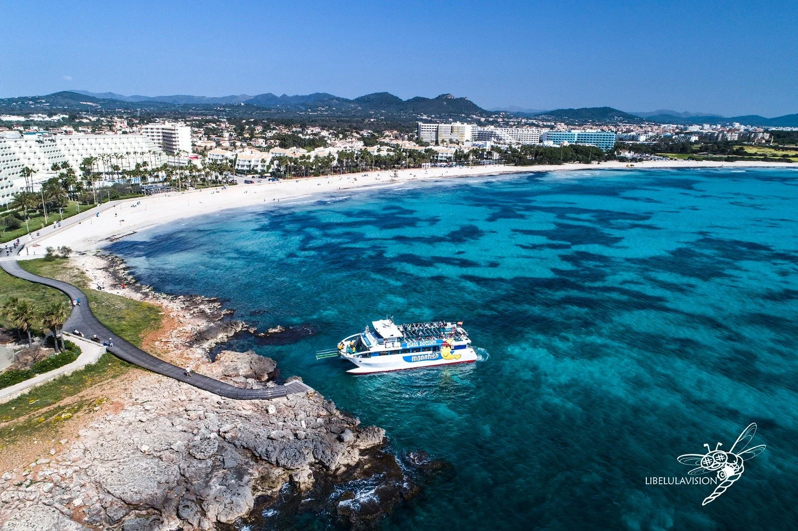 This coastal cruise from Sa Coma sails to Cala Millor and Cala Bona, then sails toward Porto Cristo, with a refreshing swim stop at Cala Morlanda and a visit to a sea cave. A great afternoon option with stunning coastal views.
